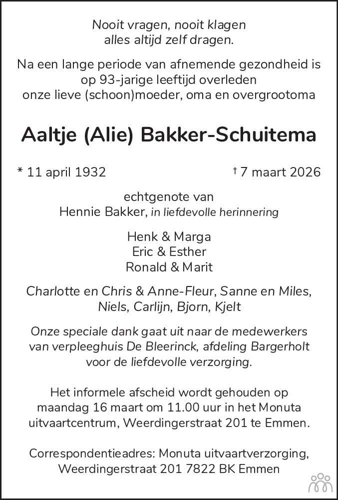 Aaltje (Alie) Bakker-Schuitema