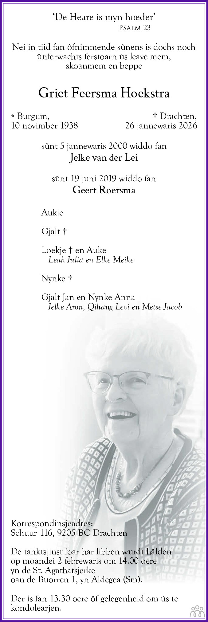 Burgum op 10 november 1938 •Drachten op 26 januari 2026